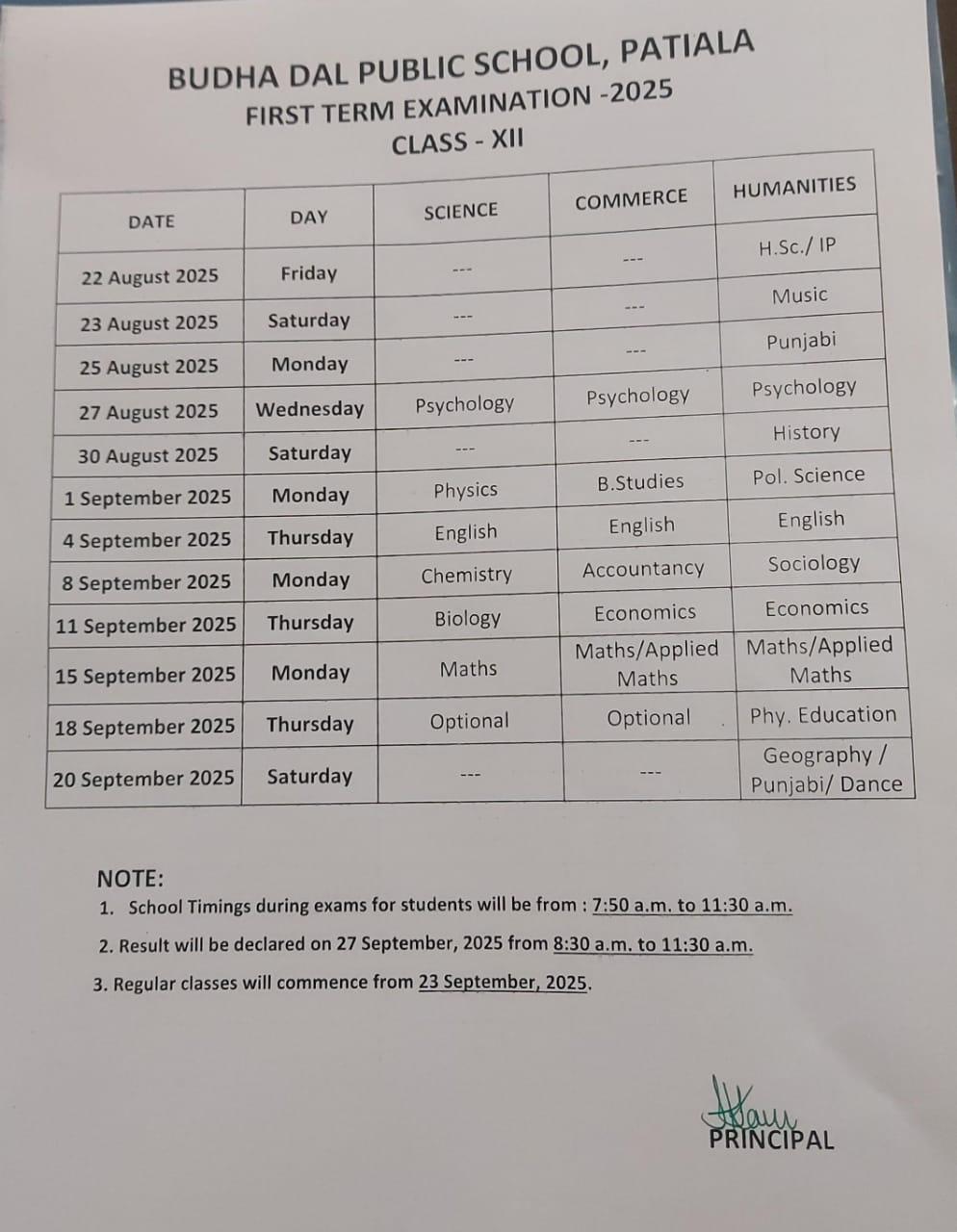 DATE SHEET TERM 1 (XII) 2025-26